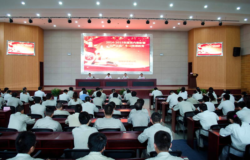 7月(yuè)1日(rì)上(shàng)午,新亞星2014-2015年(nián)度黨內(nèi)先進表 彰暨“三嚴三實”專題黨課教育在綜合樓多(duō)功能(néng)廳舉行(xíng)。中特集團黨委副書(shū)記何旭林(lín)出席了(le)大(dà)會(huì),公司黨政班子(zǐ)成員(y☆uán)、黨員(yuán)代表、受到(dào)表彰的(de)先進基層黨組織、優秀共産黨員(yuán)、優秀黨務工(gōng)作(zuò)者以及今年(nián)新發展入黨的(de)新黨員(yu>án)共110人(rén)參加了(le)會(huì)議(yì)。會(huì)議(yì)由公司黨委委員(yuán)、紀委書(shū)記、總審計(jì)師(shī)陳國(guó)安主持。