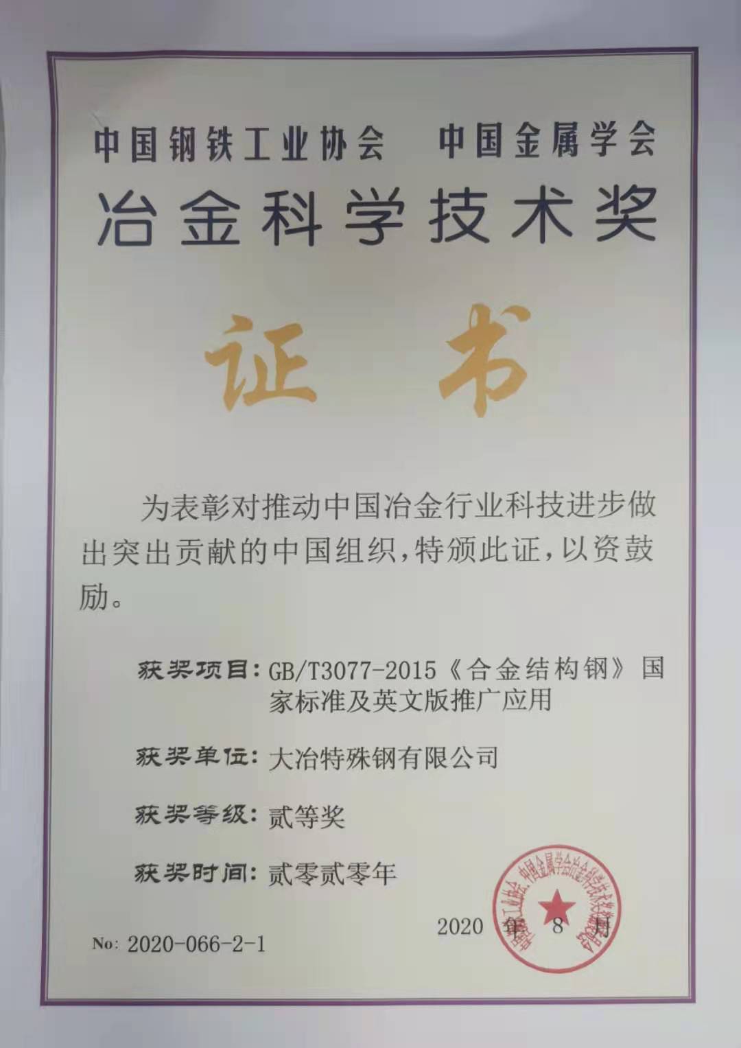冶金(jīn)科(kē)學進步獎