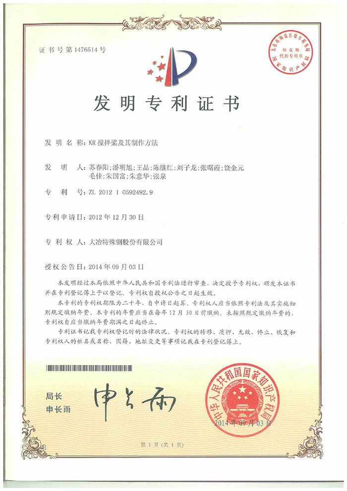 KR攪拌槳及其制(zhì)作(zuò)方法